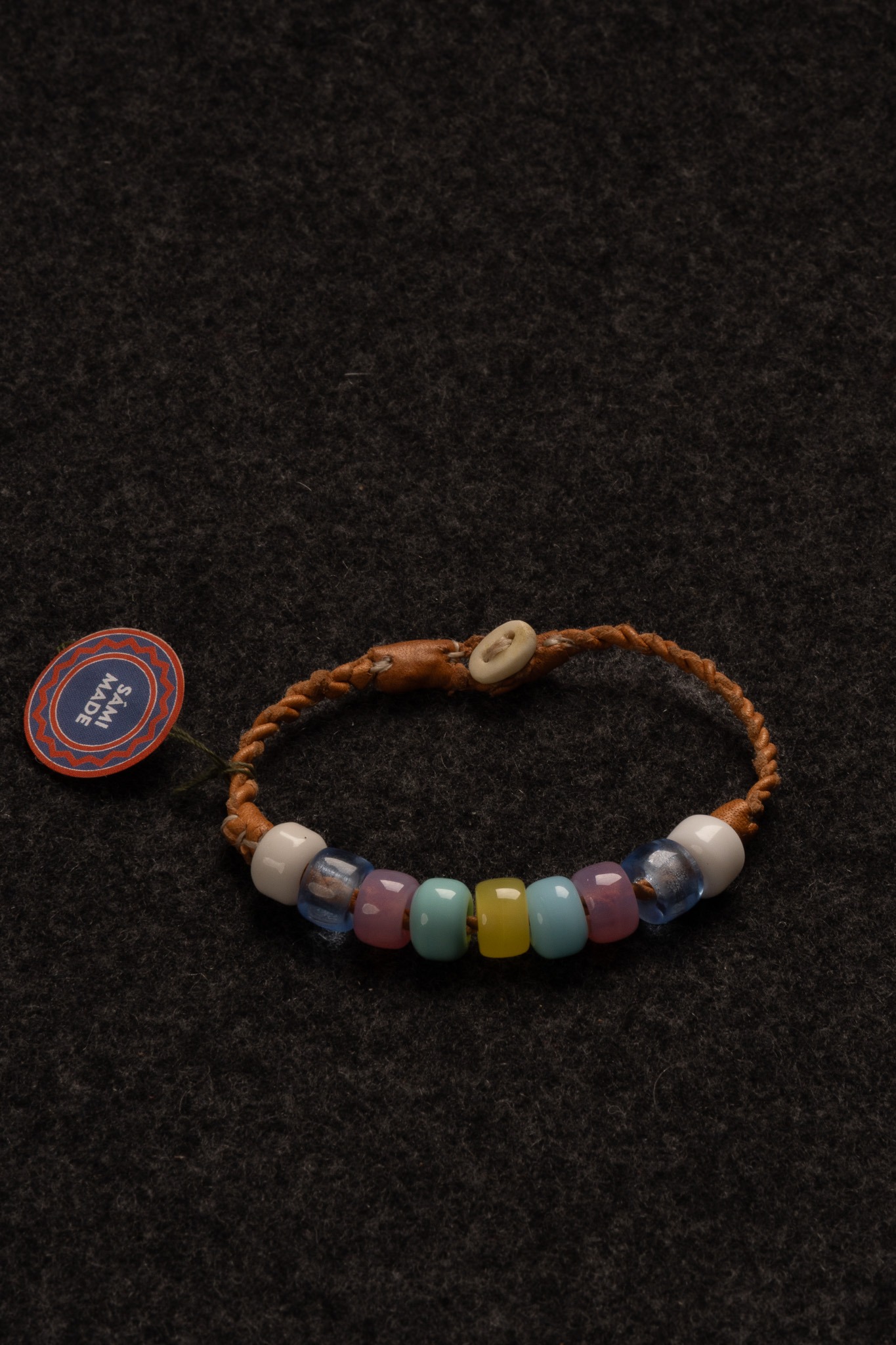Armband i renskinn med pärlor av Marie Karlsson. Storlek: 17 cm.
