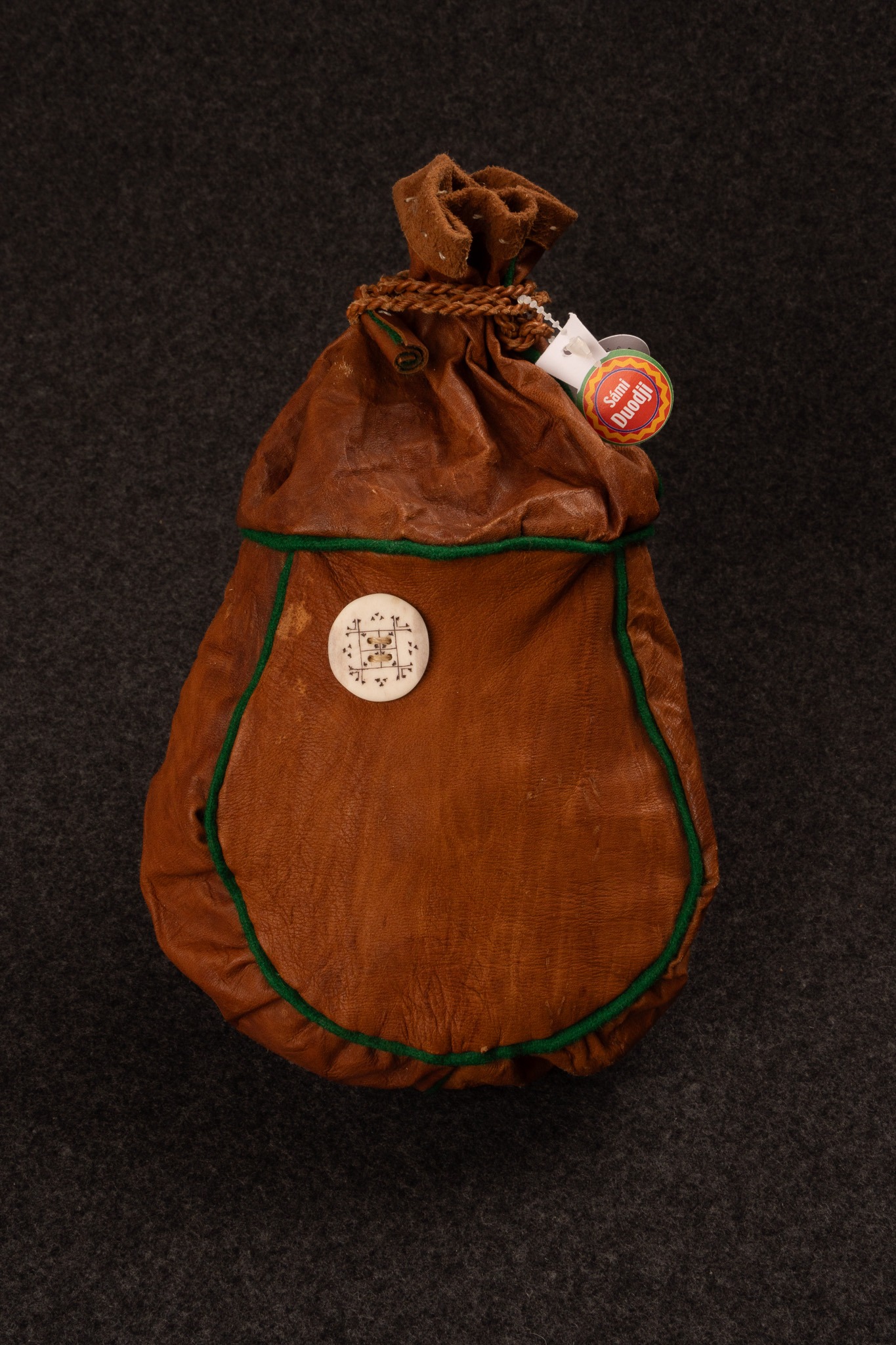 Kaffepåse i renskinn med horndekoration av Julia Rensberg.