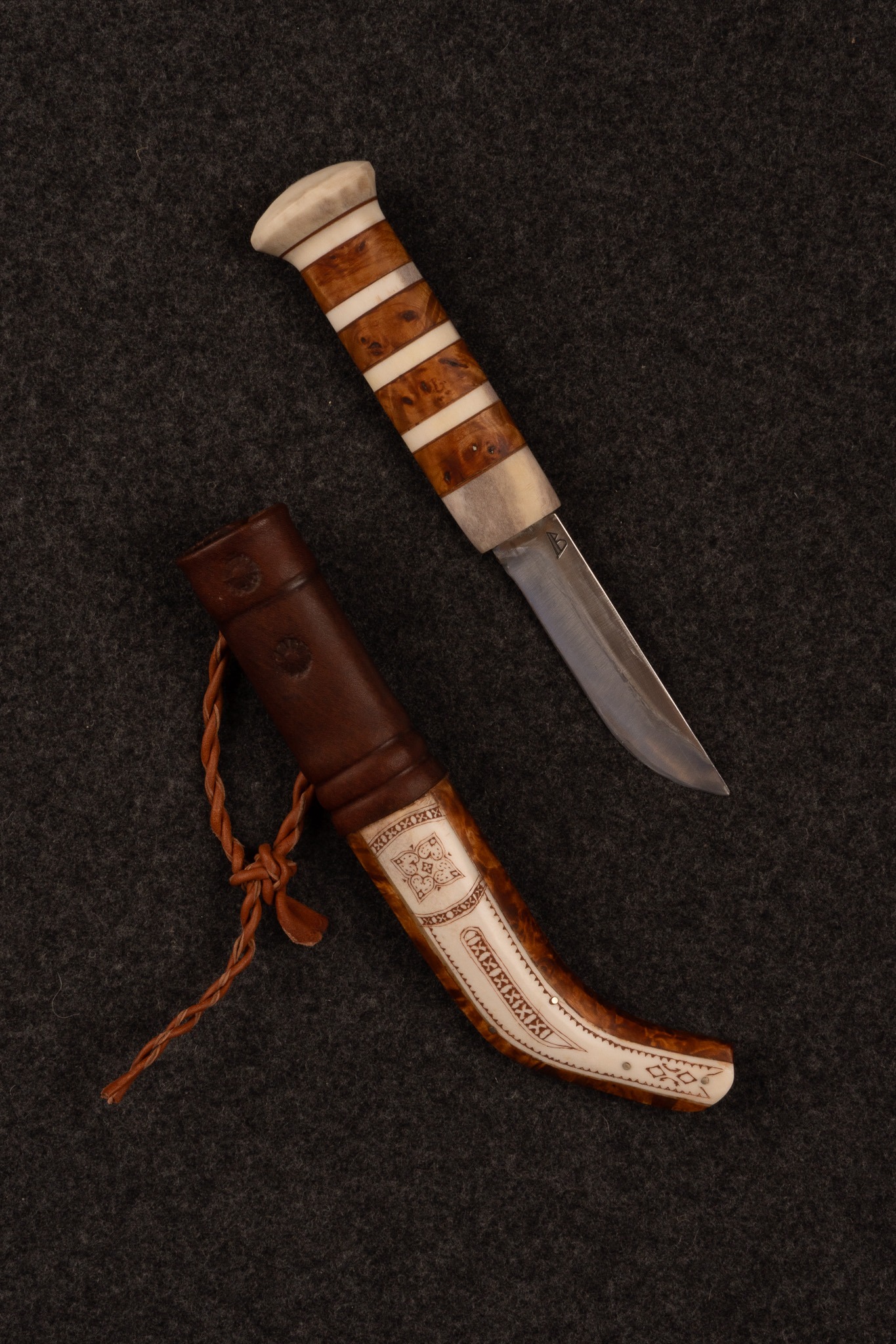 Niibi/kniv av horn och masur av Bength Olof Unga.