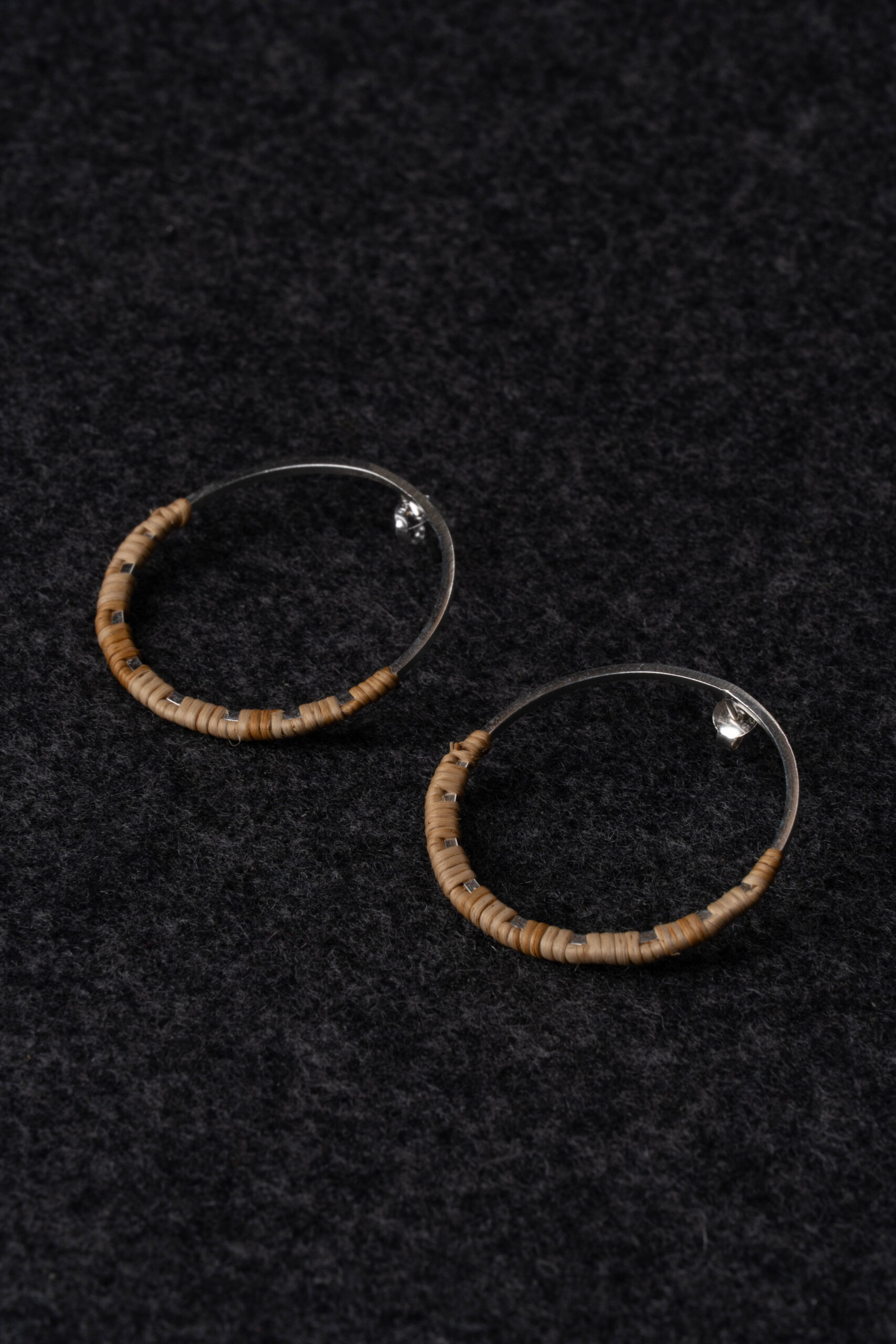 Örhänge med stift i silver och rot av Leila Nutti. Diameter: 36 mm.