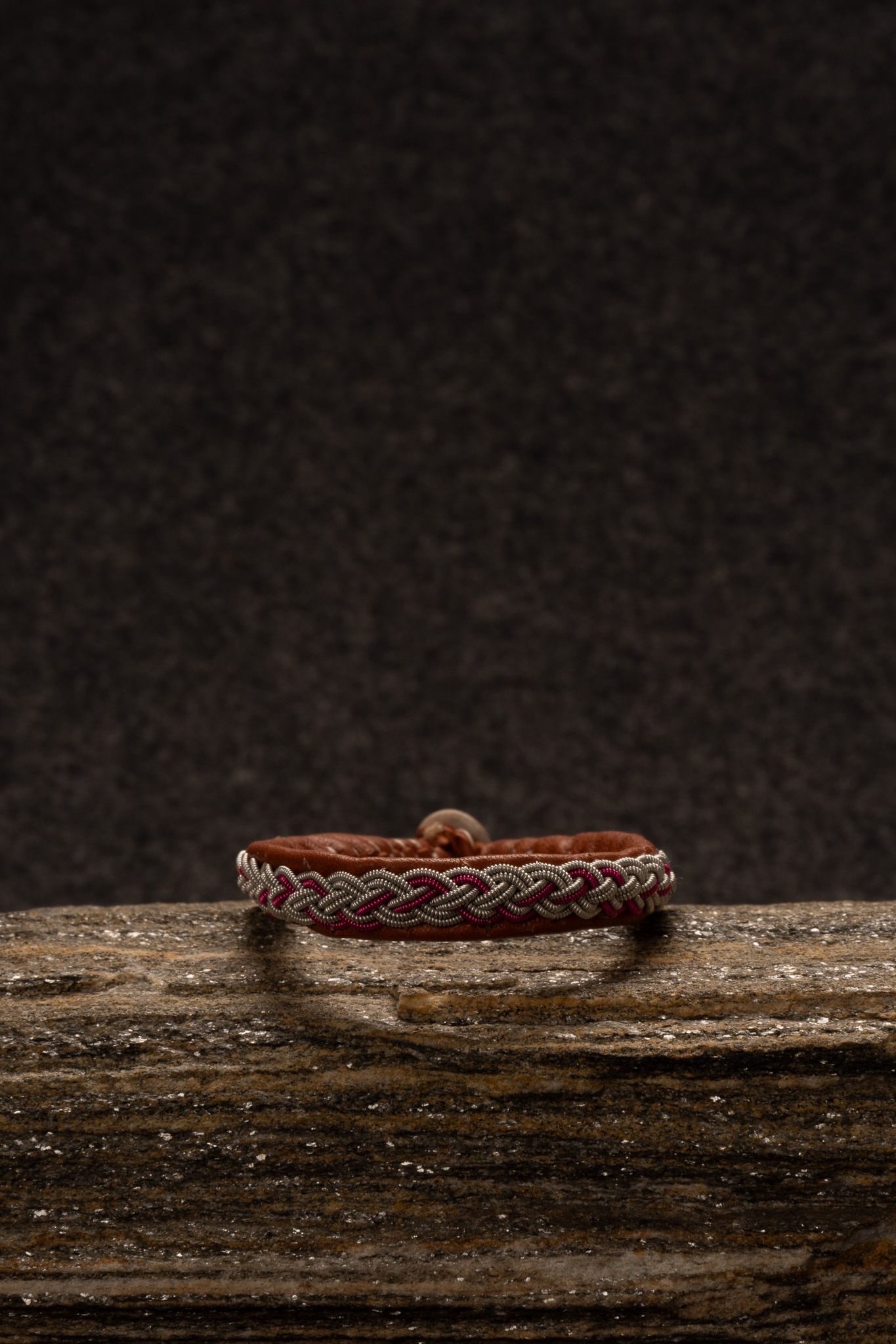 Tennarmband i maskingarvat renskinn av Eva-Marie Huuva. Längd: 18 cm.