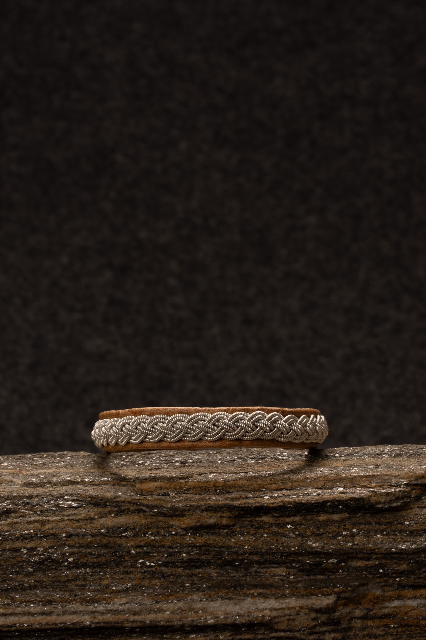 Tennarmband i hemgarvat renskinn av Katarina Bergdahl. Längd: 17,5 cm.