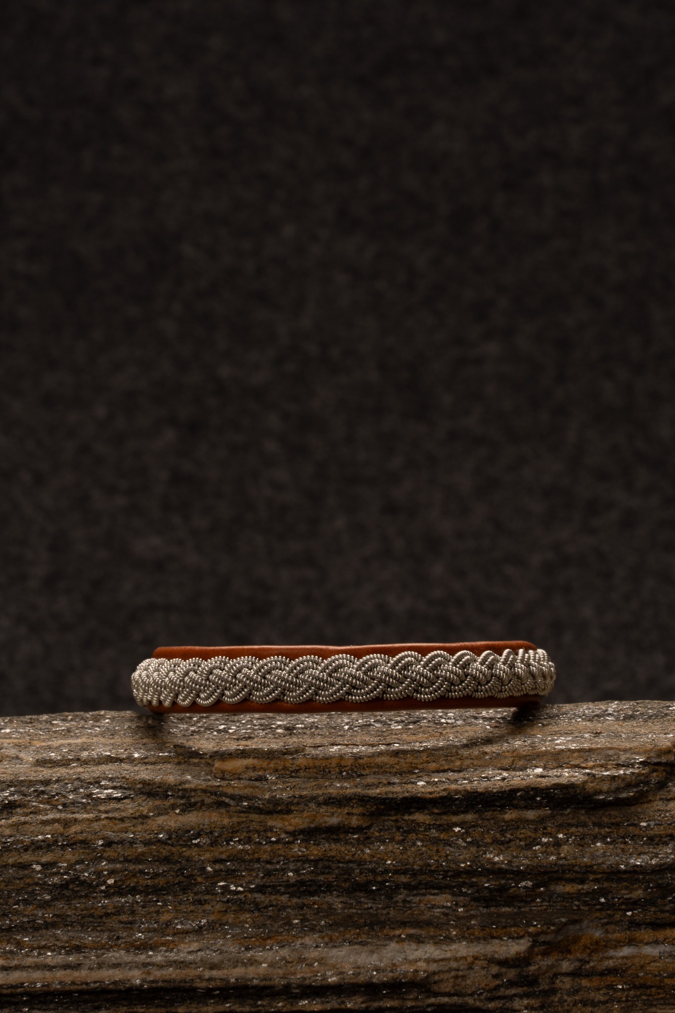 Tennarmband i maskingarvat renskinn av Katarina Bergdahl. Längd: 20,5 cm.