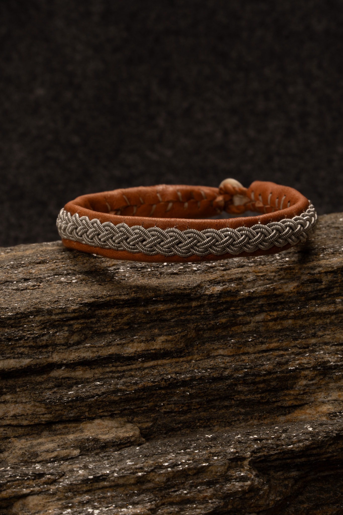 Tennarmband i maskingarvat renskinn av Eva-Marie Huuva. Längd: 19 cm.