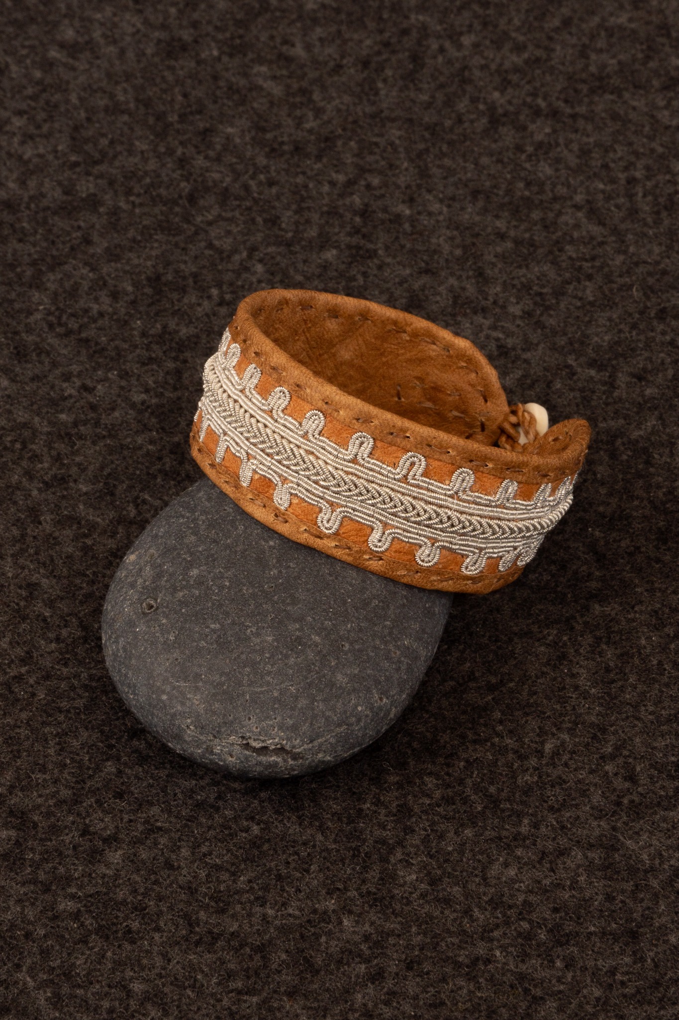Tennbroderat armband med renskinn av Ann Skum Lindström.