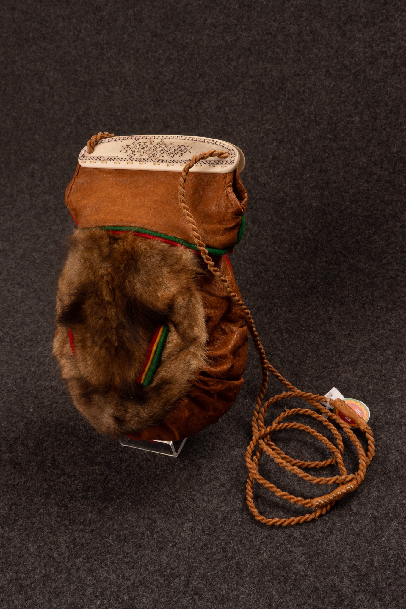 Väska av kalvhärna med hornbyglar och gravyr av Julia Rensberg.